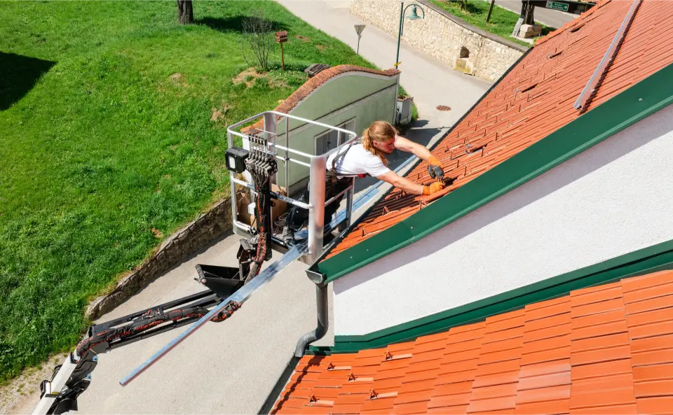 Deshalb haben wir für diese und schwierige Montageformen einen Robotik-Steiger im Einsatz. Damit kommen wir an die entlegensten Stellen und können sogar in den schwierigsten Fällen eine perfekte Montage garantieren.